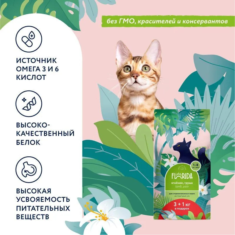 Florida Корм для взрослых стерилизованных кошек с ягненком и грушей