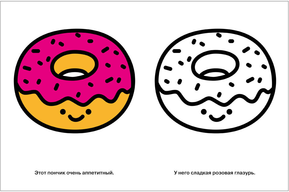 Серия: Моя первая раскраска. Ясельки Эта книга создана специально для самых юных художников, которые только начинают своё знакомство с творчеством. Крупные и простые иллюстрации легко воспринимаются детьми, толстые контуры не позволяют выходить за границы рисунка. А яркие цветные образцы на каждой странице служат отличным примером и вдохновляют на создание собственных работ. |
