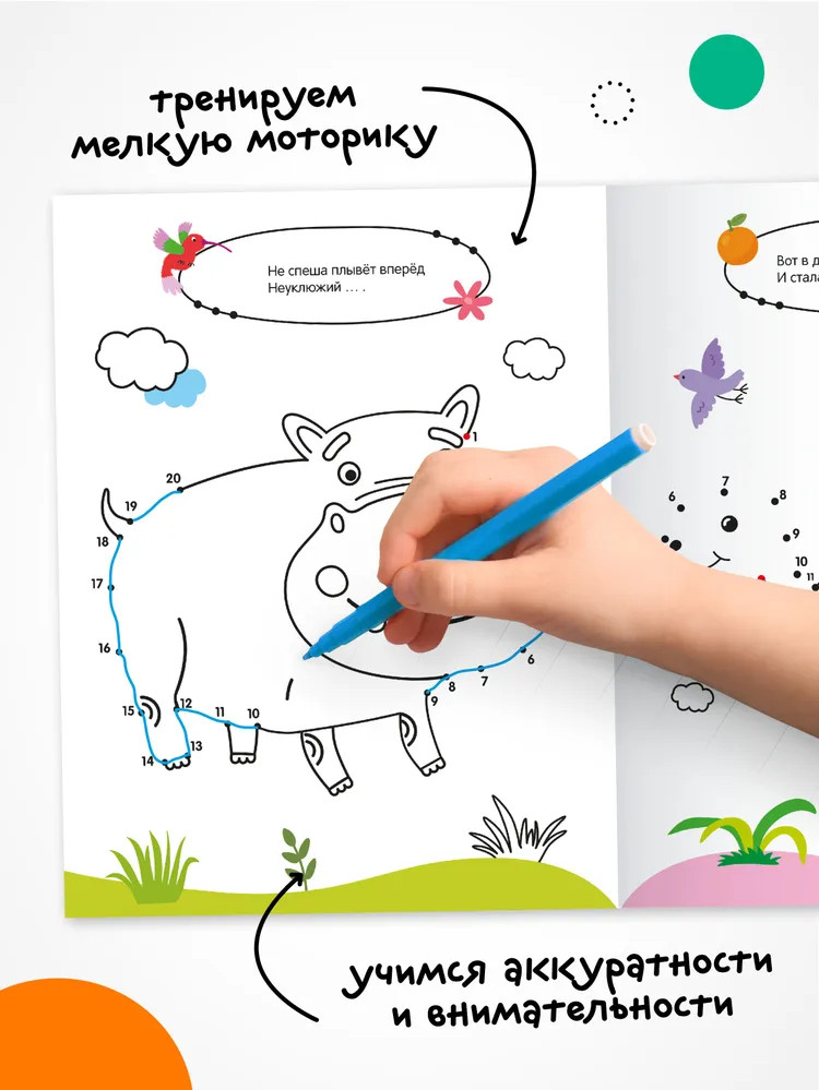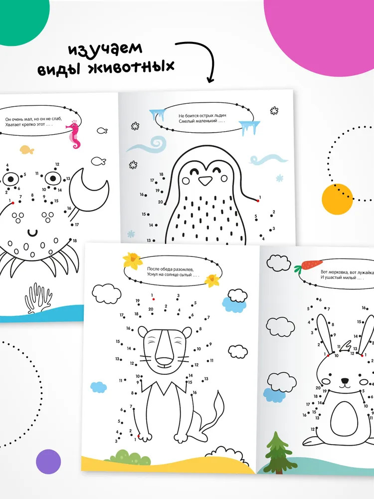 Серия: Рисуем по точкам Книга «Животные» серии «Рисую по точкам» поможет ребенку в игровой форме выучить последовательность чисел от одного до двадцати. Соединяя числа по порядку, он разовьет внимание и память. Раскрашивая рисунки, подготовит руку к письму. А, разгадывая загадки, натренирует фантазию и смекалку. Книга пригодится всем, кто заранее заботится о подготовке ребенка к школе. |