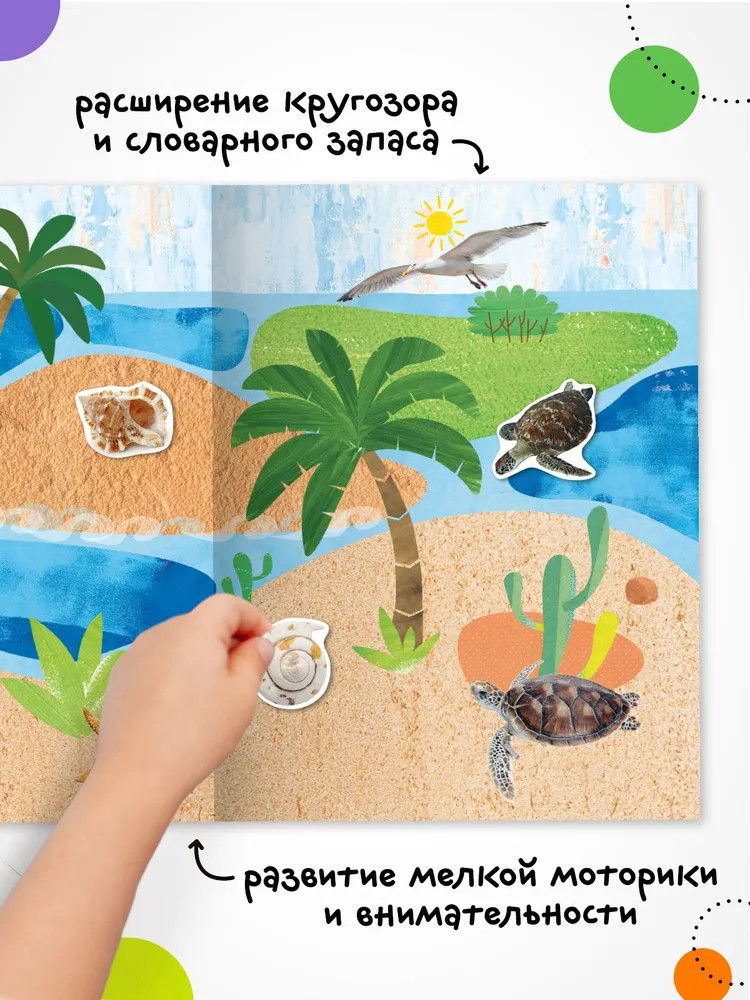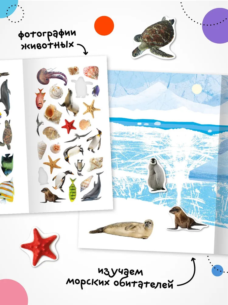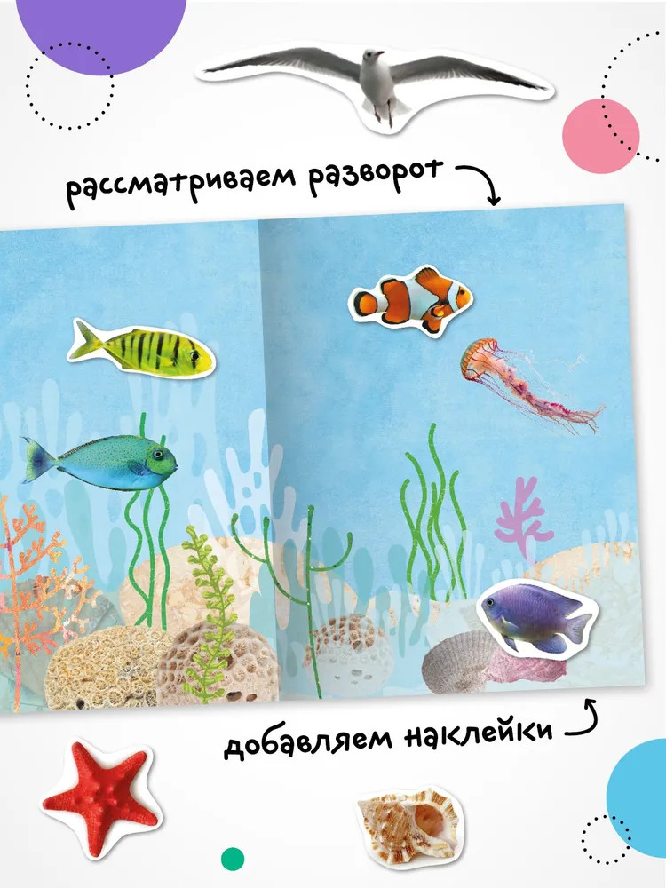 Серия: Фотонаклейки Книга «В море» серии «Фотонаклейки» — настоящая находка для развития воображения ребенка. Яркие страницы с коллажными иллюстрациями нужно заполнить разными животными. На каждом развороте дано животное-подсказка, но ребенок может придумать и свою историю. Все наклейки — это фотографии морских обитателей, а это значит, что ребенок сможет поближе с ними познакомиться. Благодаря этой книжке малыш потренирует мелкую моторику, аккуратность и расширит кругозор. |