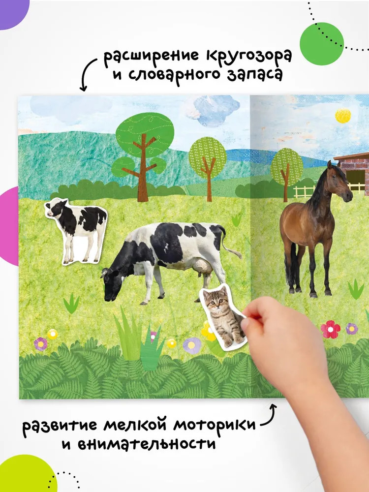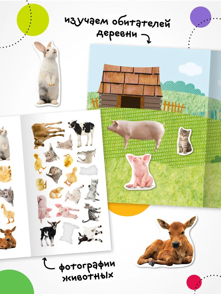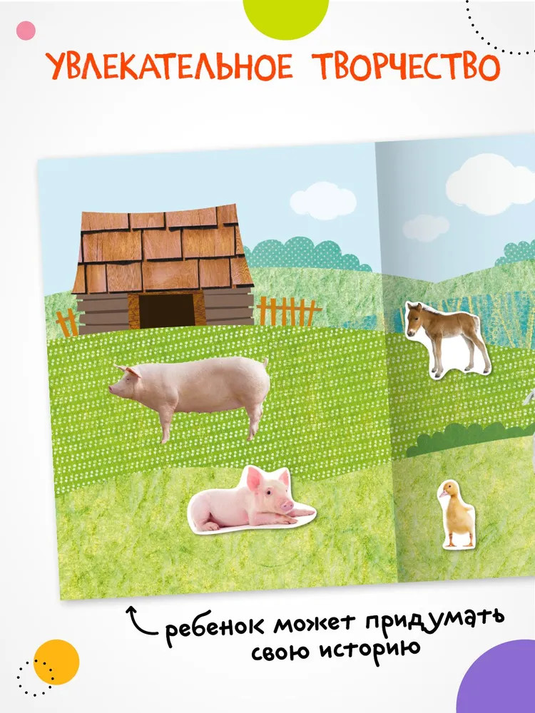 Серия: Фотонаклейки Книга «В деревне» серии «Фотонаклейки» — настоящая находка для развития воображения ребенка. Яркие страницы с коллажными иллюстрациями нужно заполнить разными животными. На каждом развороте дано животное-подсказка, но ребенок может придумать и свою историю. Все наклейки — это фотографии обитателей деревни, а это значит, что ребенок сможет поближе с ними познакомиться. Благодаря этой книжке малыш потренирует мелкую моторику, аккуратность и расширит кругозор. |
