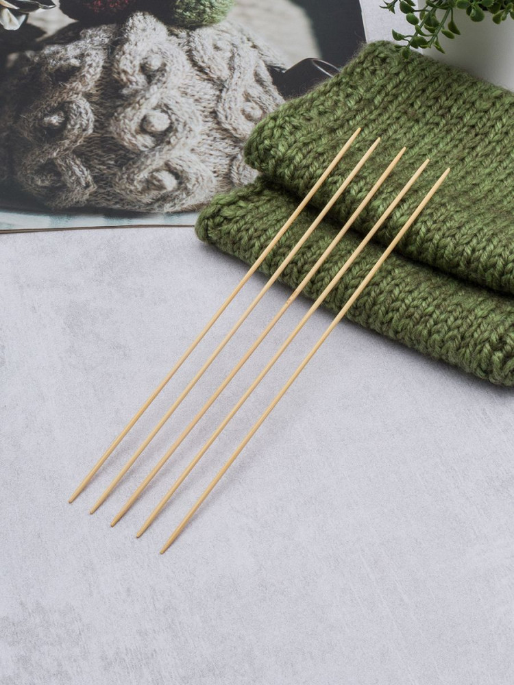 Бамбуковые носочные спицы для вязания — это универсальный инструмент, незаменимый как для начинающих рукодельниц, делающих свои первые шаги в увлекательном мире вязания, так и для опытных мастериц. Бамбуковые носочные спицы предназначены для вязания изделий с использованием круговой техники. Они идеально подходят для создания таких предметов гардероба, как носки, чулки, гетры, а также горловины свитеров. Бамбуковые спицы невероятно прочные. Даже при работе с толстыми нитками они не гнутся под весом пряжи, гарантируя ровное и аккуратное полотно. Гладкая поверхность спиц обеспечивает плавное скольжение петель, предотвращая их соскальзывание и позволяя легко контролировать плотность вязания. Работа с бамбуковыми спицами доставляет эстетическое удовольствие: поверхность гладкая, тёплая и приятная на ощупь.