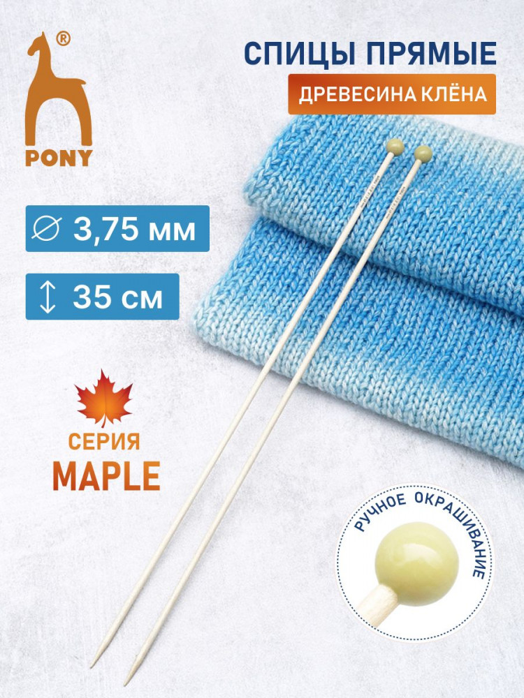Спицы для вязания прямые Pony Maple — универсальный инструмент для вязания, сочетающий в себе высочайшее качество и неповторимый дизайн. Прямые спицы для вязания Pony Maple прекрасно подходят как для создания уютной одежды — свитеров и шарфов, так и для вязания шиокого полотна, такого как пледы и коврики. Спицы хорошо работают с любым видом пряжи, в том числе с вискозой или мерсеризованным хлопком, не повреждая ее структуру и позволяя получить безупречный результат.
