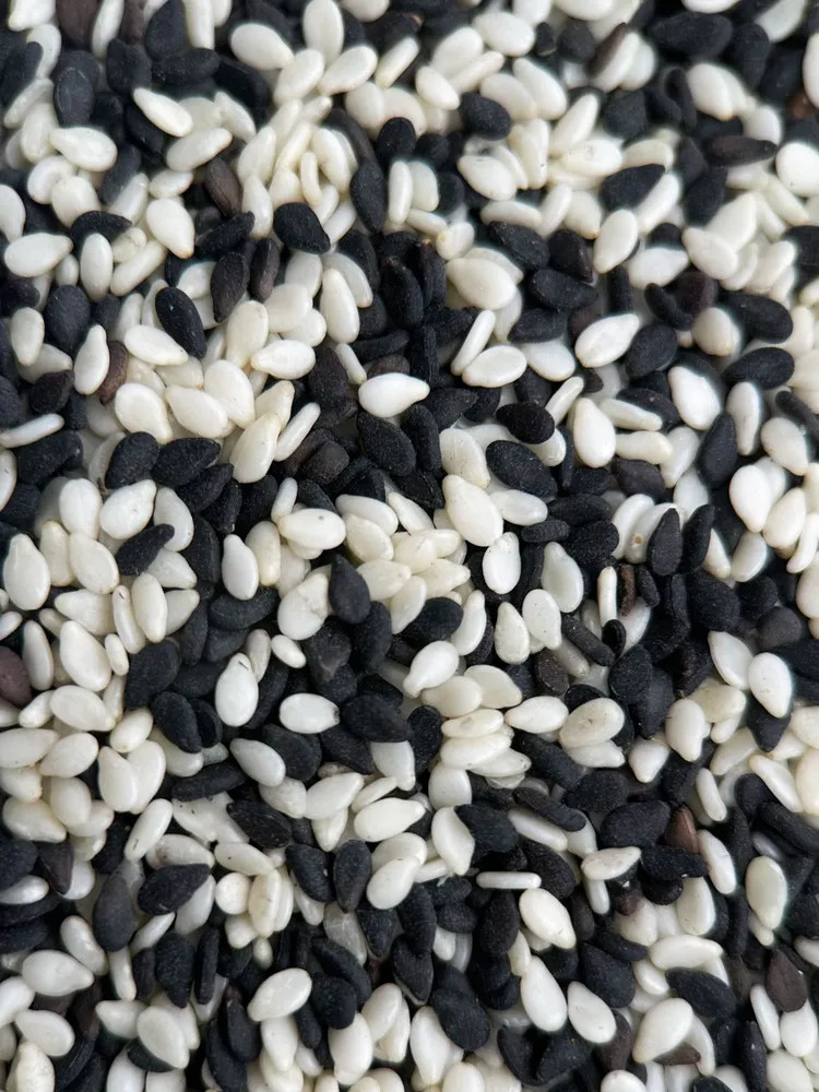 Уникальность нашей смеси проявляется в ее кулинарной универсальности — она станет идеальным дополнением для блюд азиатской кухни, включая роллы и суши с нори, пикантное кимчи, нежный тофу и питательный урбеч. Семена прекрасно подходят для создания традиционной кунжутной пасты и соуса терияки, добавления в свежие салаты и овощные гарниры, приготовления выпечки и хлеба, а также для украшения блюд из кальмаров и диетических конфет и десертов. Особенность смеси заключается в гармоничном сочетании нежного вкуса белого кунжута с насыщенным ароматом черного, что создает неповторимую палитру вкусов и текстур.