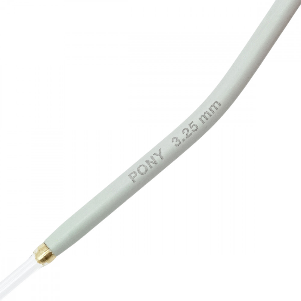 Слегка закругленные концы спиц мягко скользят между петлями, не цепляясь за волокна. Кроме того, закругленные концы не травмируют пальцы. Пластиковый тросик — прочный, гибкий, гладкий и не перекручивается в процессе работы. Чтобы петли было удобно перекидывать и снимать, спицы слегка искривлены и сужаются на переходе к тросику. Круговые спицы Pony снабжены нестираемой маркировкой с указанием размера, позволяя легко выбирать нужный инструмент для конкретного проекта. Круговые спицы Pony — это выбор качества, комфорта и безупречного результата в вашем вязальном творчестве. Они станут незаменимыми помощниками для опытных мастериц и прекрасным инструментом для начинающих рукодельниц.
