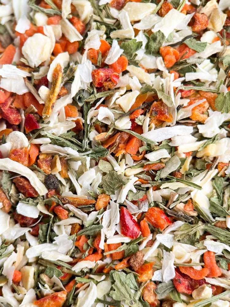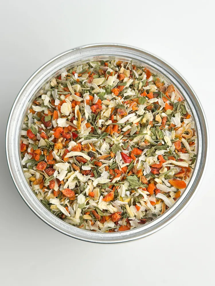 Эта сухая овощная смесь невероятно универсальна в использовании — она идеально подходит для приготовления ароматных супов, наваристых бульонов, сытного плова, овощного рагу, борща, солянки и даже освежающего гаспачо. Добавляйте ее в качестве заправки для салатов, гарниров, мясных и овощных запеканок, соусов и маринадов — она придаст вашим блюдам неповторимый вкус и аромат. Смесь прекрасно дополняет картофельные блюда, рис и томатные соусы, делая их более яркими и питательными.