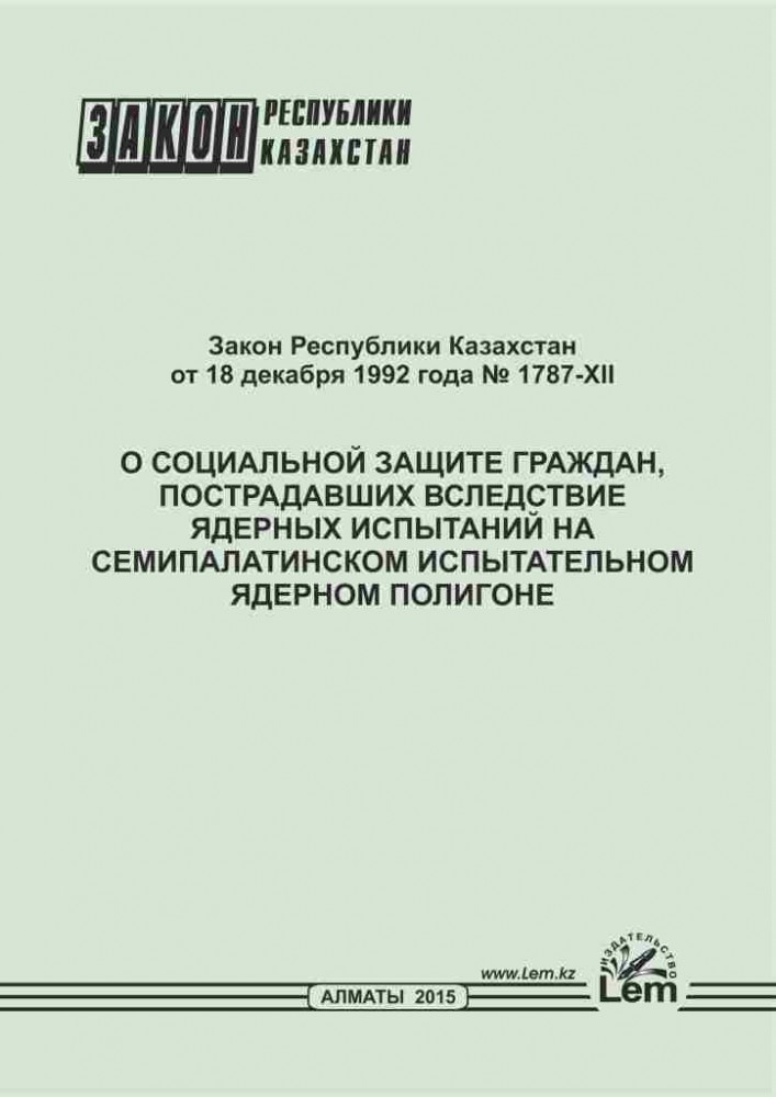 💳 Оплатить за товар можно при получении 🇰🇿 Есть бесплатная доставка по Казахстану от 1 дня 🎁 Копите бонусы с каждой покупки Закон РК о социальной защите граждан, пострадавших вследствие ядерных испытаний на Семипалатинском испытательном ядерном полигоне. |