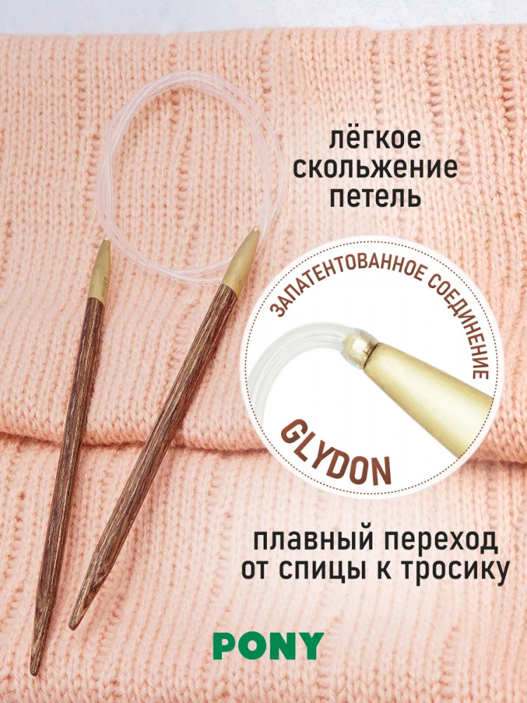 Для изготовления спиц используется древесина трех редких пород дерева: эвкалипта, падука и тика. Заготовка сырья ведется в лесах, где посадки деревьев возобновляются, позволяя избежать ущерба для природы. Тщательно отшлифованные спицы обладают гладкой, шелковистой поверхностью. Они не повреждают структуру нити и приятны на ощупь во время вязания. Каждая пара спиц имеет уникальный древесный рисунок. Запатентованная система соединения лески Glydon обеспечивает невероятно плавное скольжение петель по тросику, предотвращая запутывание и облегчая процесс вязания. Тросик из прозрачного мягкого пластика — прочный, легкий и гибкий. Для тех, кто любит путешествовать, спицы Pony Perfect станут отличным спутником: многие авиаперевозчики позволяют провозить деревянные спицы вместе с ручной кладью в пассажирском салоне. Вы всегда сможете иметь под рукой любимые инструменты для вязания, где бы вы ни находились. Спицы Pony Perfect станут незаменимым инструментом для любой мастерицы, которая ценит красоту и качество в каждой детали.