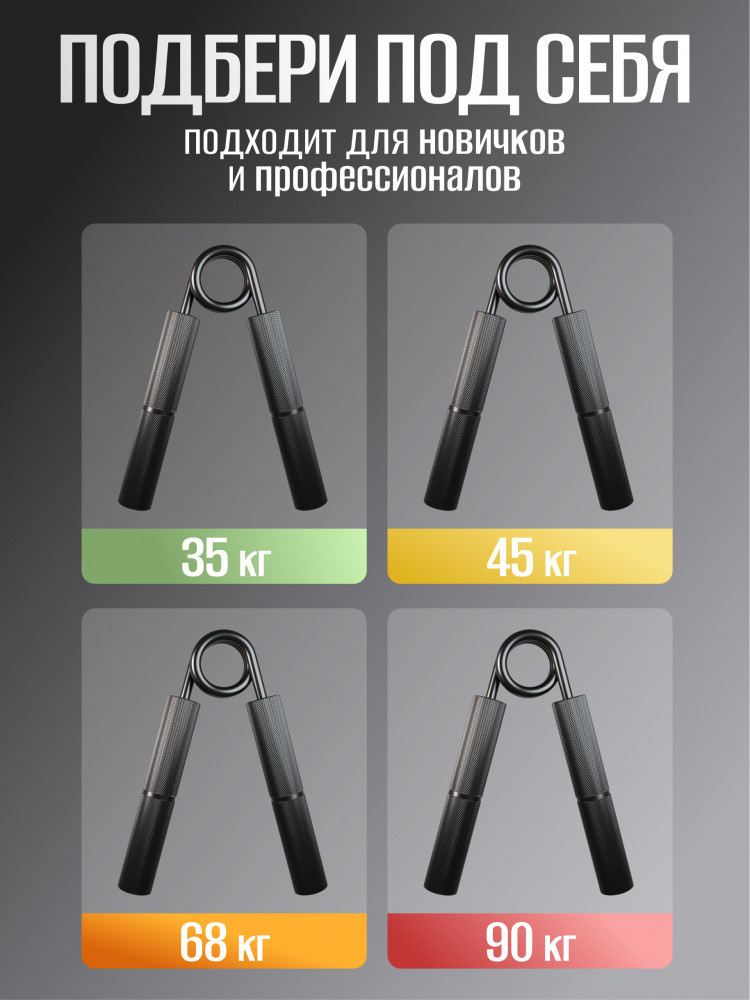 Металлическая пружина из пружинной стали обеспечивает стабильную эластичность и ресурс многократных сжатий. Рукояти — металлические, с противоскользящей накаткой для уверенного хвата. В круглой версии корпус полностью металлический, сплошной, без резиновых вставок. Линейка включает 4 уровня — 35, 45, 68 и 90 кг. Максимальная нагрузка указана в названии и подтверждает усилие, необходимое для полного сжатия эспандера. Тренировочная эффективность регулярная работа с эспандером развивает силу мышц кисти и предплечий, укрепляет связки для запястья, улучшает общую выносливость хвата. Подходит для силовых видов спорта, единоборств, скалолазания и функциональной подготовки. Компактен: этот спортивный эспандер легко брать на работу и в дорогу — эффективное дополнение для тренировок дома и в зале.