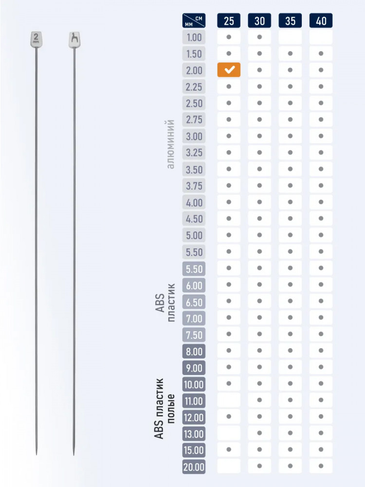 Спицы для вязания прямые от бренда Pony подходят для вязания шарфов и крупных деталей одежды, таких как спинка и передняя часть свитера, жилетки или кофты. Спицы изготовлены из легкого и прочного алюминия: это сочетание позволит часами наслаждаться процессом вязания без напряжения в руках. Легкий алюминий обеспечит вам комфорт даже при работе над крупными проектами. Особого внимания заслуживает технология обработки поверхности спицы (анодирование). Эта процедура защищает алюминий от коррозии, продлевает срок службы инструмента и обеспечивает плавное скольжение пряжи.