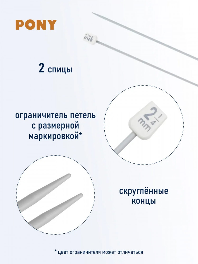 Спицы практически не гнутся, сохраняя свою форму даже при интенсивном использовании. Безупречно гладкая поверхность спиц предотвращает зацепки и образование узелков. Ваша нить будет двигаться свободно и плавно, создавая ровное полотно. Слегка закругленные концы спиц мягко скользят между петлями, не цепляясь за волокна. Кроме того, закругленные концы не травмируют пальцы. Специальные наконечники предотвращают соскальзывание петель, сохраняя вашу работу в целости. Размер спиц указан на наконечнике для быстрого и удобного поиска. Особое внимание следует уделить правильному выбору размера спиц в соответствии с толщиной пряжи. Слишком толстые спицы приведут к рыхлой вязке, а слишком тонкие- к плотной и жесткой. Рекомендации по выбору размера спиц обычно указываются на этикетке пряжи. Прямые спицы Пони представляют собой надежный и удобный инструмент для вязания различных изделий, особенно для начинающих вязальщиков и для тех, кто ценит комфорт и легкость в работе. Они станут незаменимыми помощниками в создании красивых и уютных вещей своими руками.