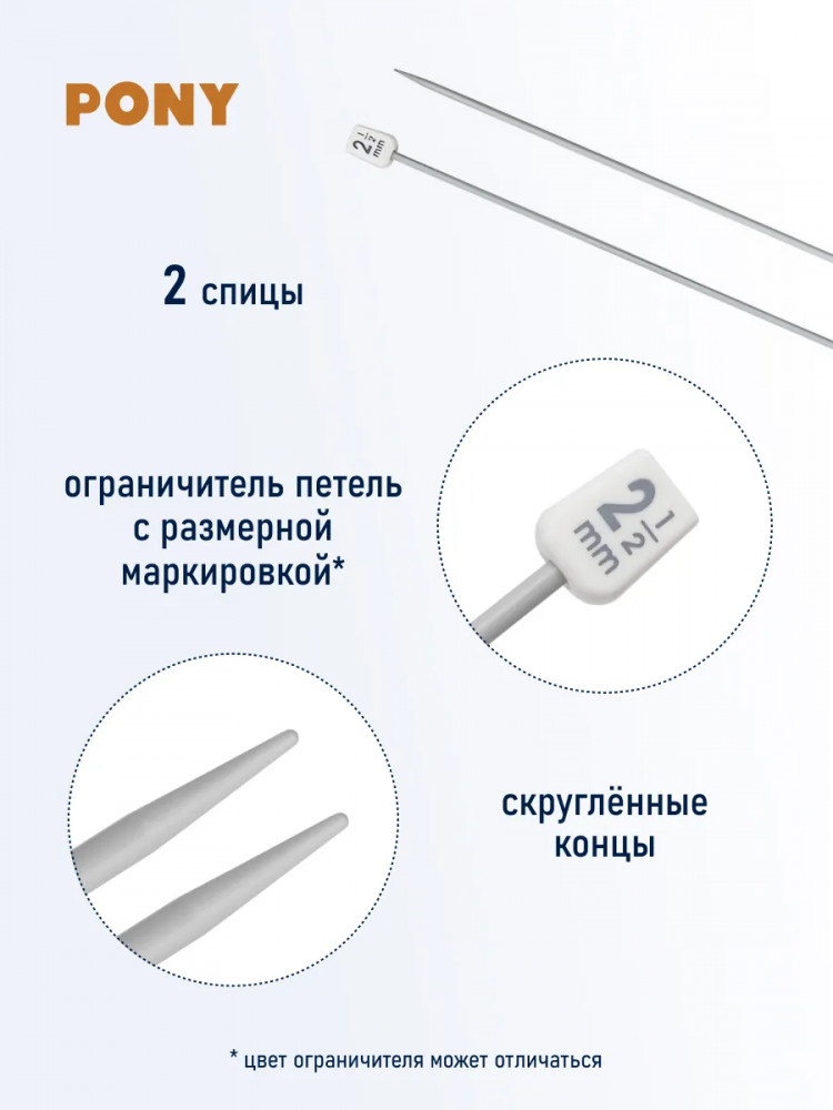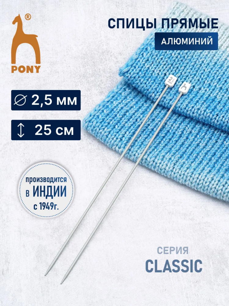 Спицы для вязания прямые от бренда Pony подходят для вязания шарфов и крупных деталей одежды, таких как спинка и передняя часть свитера, жилетки или кофты. Спицы изготовлены из легкого и прочного алюминия: это сочетание позволит часами наслаждаться процессом вязания без напряжения в руках. Легкий алюминий обеспечит вам комфорт даже при работе над крупными проектами. Особого внимания заслуживает технология обработки поверхности спицы (анодирование). Эта процедура защищает алюминий от коррозии, продлевает срок службы инструмента и обеспечивает плавное скольжение пряжи.
