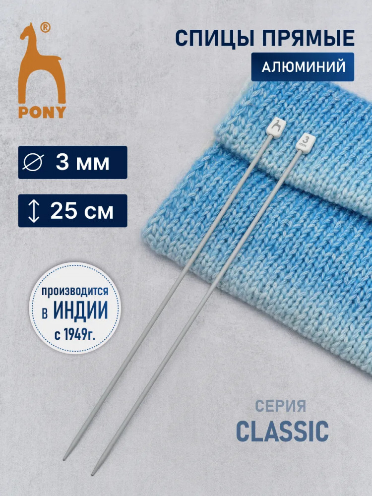 Спицы для вязания прямые от бренда Pony подходят для вязания шарфов и крупных деталей одежды, таких как спинка и передняя часть свитера, жилетки или кофты. Спицы изготовлены из легкого и прочного алюминия: это сочетание позволит часами наслаждаться процессом вязания без напряжения в руках. Легкий алюминий обеспечит вам комфорт даже при работе над крупными проектами. Особого внимания заслуживает технология обработки поверхности спицы (анодирование). Эта процедура защищает алюминий от коррозии, продлевает срок службы инструмента и обеспечивает плавное скольжение пряжи.