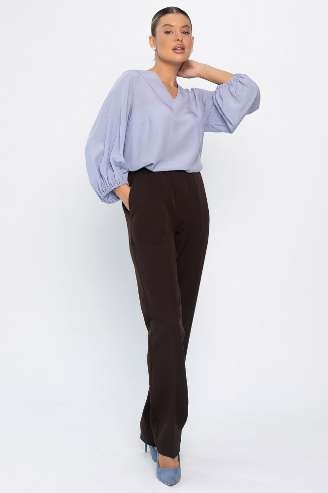 Классические брюки станут отличным дополнением к вашему гардеробу. Благодаря высокой посадке и резинке по талии эти брюки обеспечивают максимальный комфорт. Они подходят как для офисного стиля, так и для более расслабленных образов. Можно носить как с жакетом, так и со свитером, создавая стильный и современный образ.