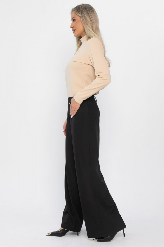 Брюки палаццо - это универсальный элемент гардероба, который подходит для любого времени года. Изготовлены из костюмной ткани, которая обеспечивает комфорт и элегантный вид. Они имеют молнию в боковом шве и шлёвки под ремень для надёжной фиксации на талии. Брюки отлично сочетаются с различной верхней одеждой и обувью. Эти брюки добавят стиль и изысканность в ваш образ, обеспечивая при этом комфорт и удобство в повседневной носке.