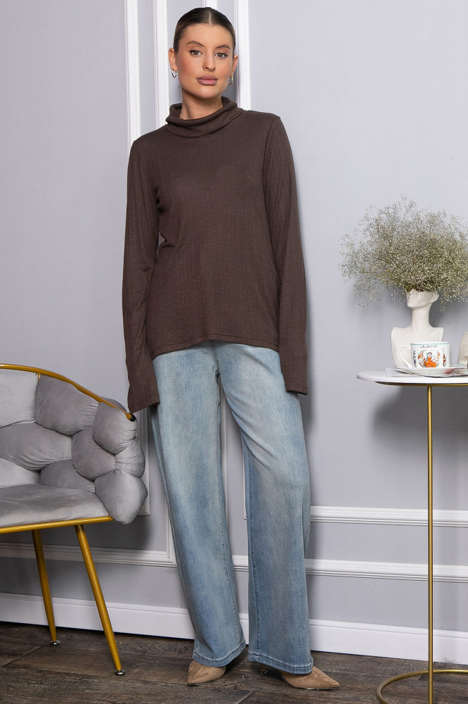 Ажурный трикотажный джемпер в кофейном цвете — идеальный выбор для создания стильных повседневных образов. Модель с втачным удлиненным рукавом и воротником-хомутом придает современный силуэт. Асимметричный крой низа, с удлинением от центра к бокам, добавляет оригинальности. Ткань с перфорацией в виде сердечек придает образу нежность и романтичность. Создайте модные и комфортные образы с нашим новым джемпером!
