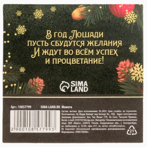 Sima-Land Home Монета сувенирная «Счастливого года»новинка В данный момент этот товар отсутствует в продаже. Возможно, у нас найдется аналогичный или похожий товар здесь. Сувенирная монета — стильный символ удачи и изобилия, созданный, чтобы воплотить праздничное настроение в каждой детали! Яркий блеск, изящный дизайн и тематическое оформление делают её идеальным подарком, который приносит радость, вдохновение и веру в чудеса. Такая монета станет не просто украшением или сувениром, а настоящим талисманом на удачу в новом году. |