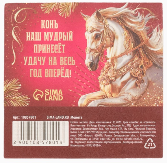 Монета сувенирная «Счастливого года»В данный момент этот товар отсутствует в продаже. Возможно, у нас найдется аналогичный или похожий товар здесь. Сувенирная монета — стильный символ удачи и изобилия, созданный, чтобы воплотить праздничное настроение в каждой детали! Яркий блеск, изящный дизайн и тематическое оформление делают её идеальным подарком, который приносит радость, вдохновение и веру в чудеса. Такая монета станет не просто украшением или сувениром, а настоящим талисманом на удачу в новом году. |