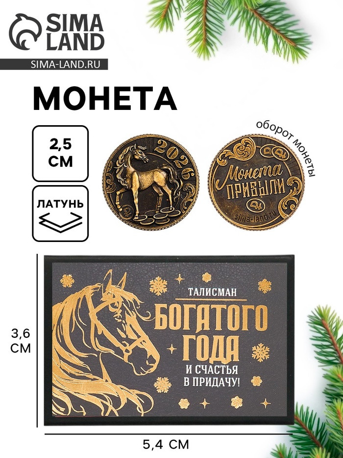 Sima-Land Home Монета сувенирная в коробочке «Прибыли»новинка В данный момент этот товар отсутствует в продаже. Возможно, у нас найдется аналогичный или похожий товар здесь. Сувенирная монета — стильный символ удачи и изобилия, созданный, чтобы воплотить праздничное настроение в каждой детали! Яркий блеск, изящный дизайн и тематическое оформление делают её идеальным подарком, который приносит радость, вдохновение и веру в чудеса. Такая монета станет не просто украшением или сувениром, а настоящим талисманом на удачу в новом году. |