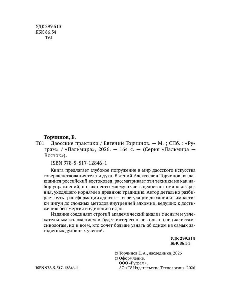 Книга предлагает глубокое погружение в мир даосского искусства совершенствования тела и духа. Евгений Алексеевич Торчинов, выдающийся российский востоковед, рассматривает эти техники не как набор упражнений, но как неотъемлемую часть целостного мировоззрения, уходящего корнями в древнюю традицию. Автор детально разбирает путь трансформации адепта — от регуляции дыхания и гимнастики цигун до сложных методов внутренней алхимии, ведущих к достижению бессмертия и единению с дао. Издание соединяет строгий академический анализ с ясным и увлекательным изложением и будет интересно не только специалистам-синологам, но и всем, кто хочет больше узнать об одном из самых загадочных духовных учений.