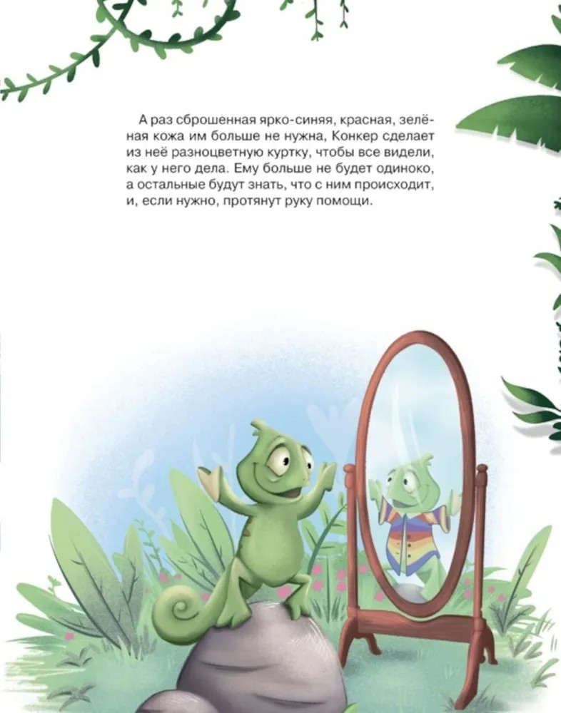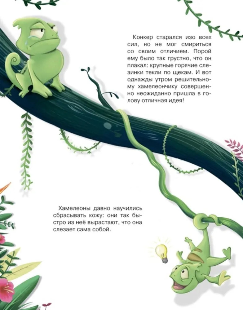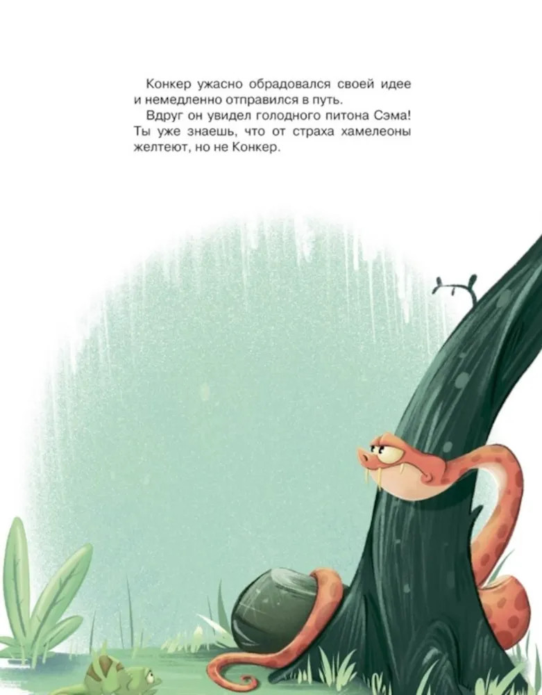 Хамелеон Конкер с рождения был похож на других малышей: язык-липучка и хвост-завитушка. Но однажды он заметил, что не меняет цвет. А именно по цвету хамелеоны привыкли определять настроение. Но внешность бывает обманчива. Как научиться выражать свои чувства? Книги Ханны Пекхэм — это возможность в игровой форме развить эмоциональный интеллект и поговорить с ребёнком о чувствах и переживаниях на понятном ему языке. Простая и яркая история с весёлыми заданиями для саморазвития поможет объяснить малышу, почему важно быть собой. |