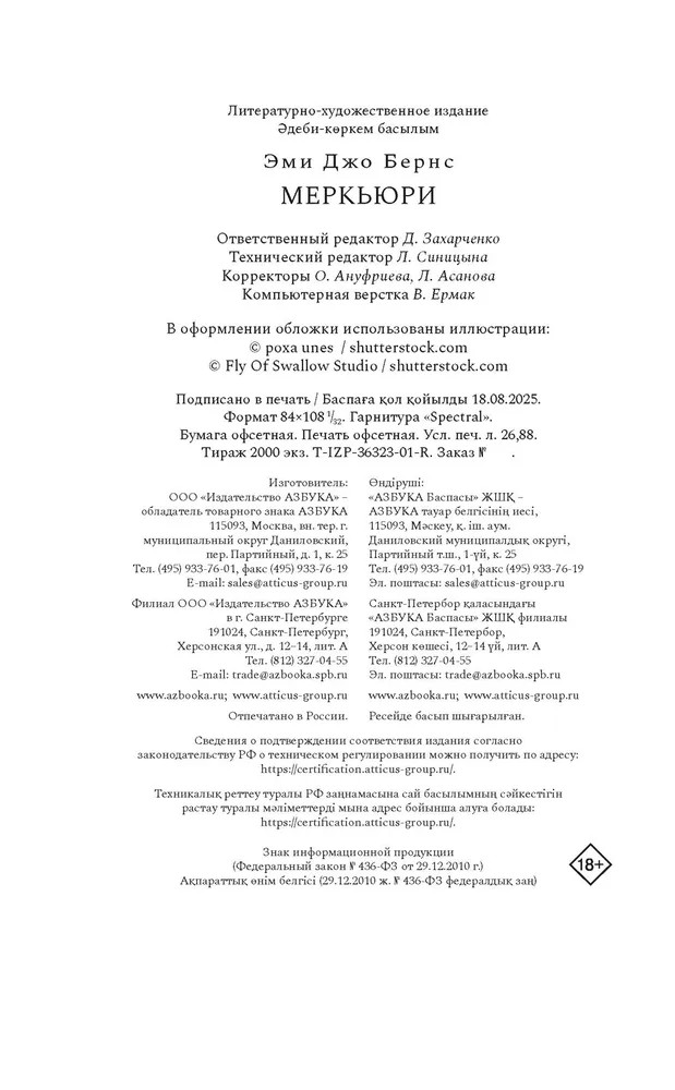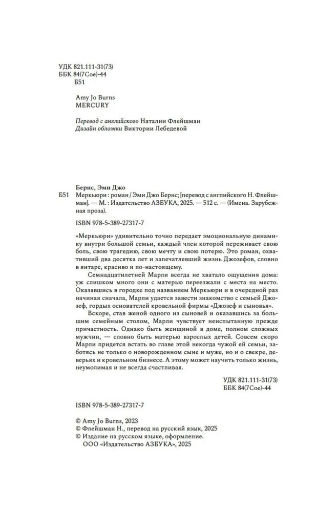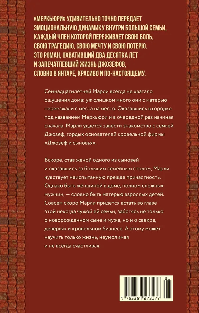 💳 Оплатить за товар можно при получении 🇰🇿 Есть бесплатная доставка по Казахстану 🎁 Копите бонусы с каждой покупки Серия: Имена. Зарубежная проза «Меркьюри» удивительно точно передает эмоциональную динамику внутри большой семьи, каждый член которой переживает свою боль, свою трагедию, свою мечту и свою потерю. Это роман, охвативший два десятка лет и запечатлевший жизнь Джозефов, словно в янтаре, красиво и по-настоящему. |