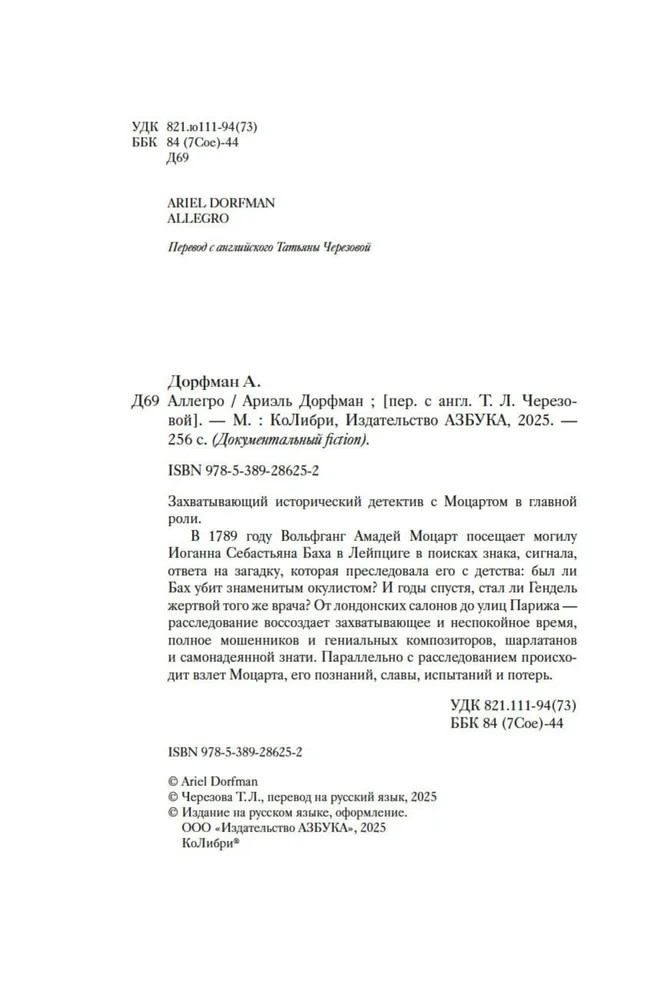 💳 Оплатить за товар можно при получении 🇰🇿 Есть бесплатная доставка по Казахстану 🎁 Копите бонусы с каждой покупки Серия: Документальный fiction Захватывающий исторический детектив с Моцартом в главной роли. |