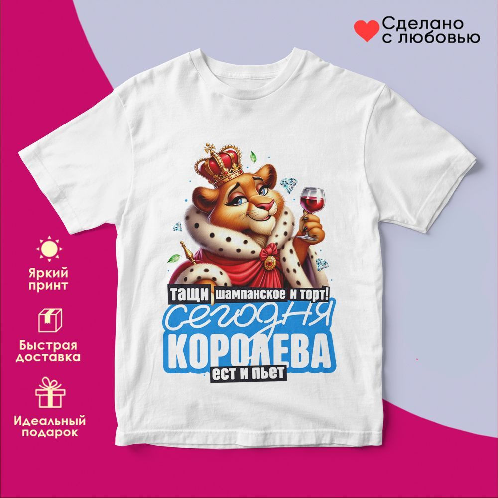 TopPoshiv Футболка с принтом «Тащи шампанское и торт! Сегодня королева ест и пьет 4»
