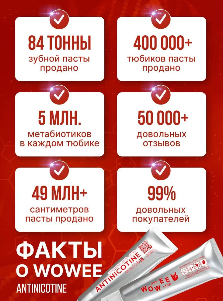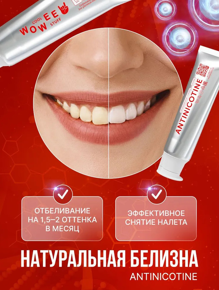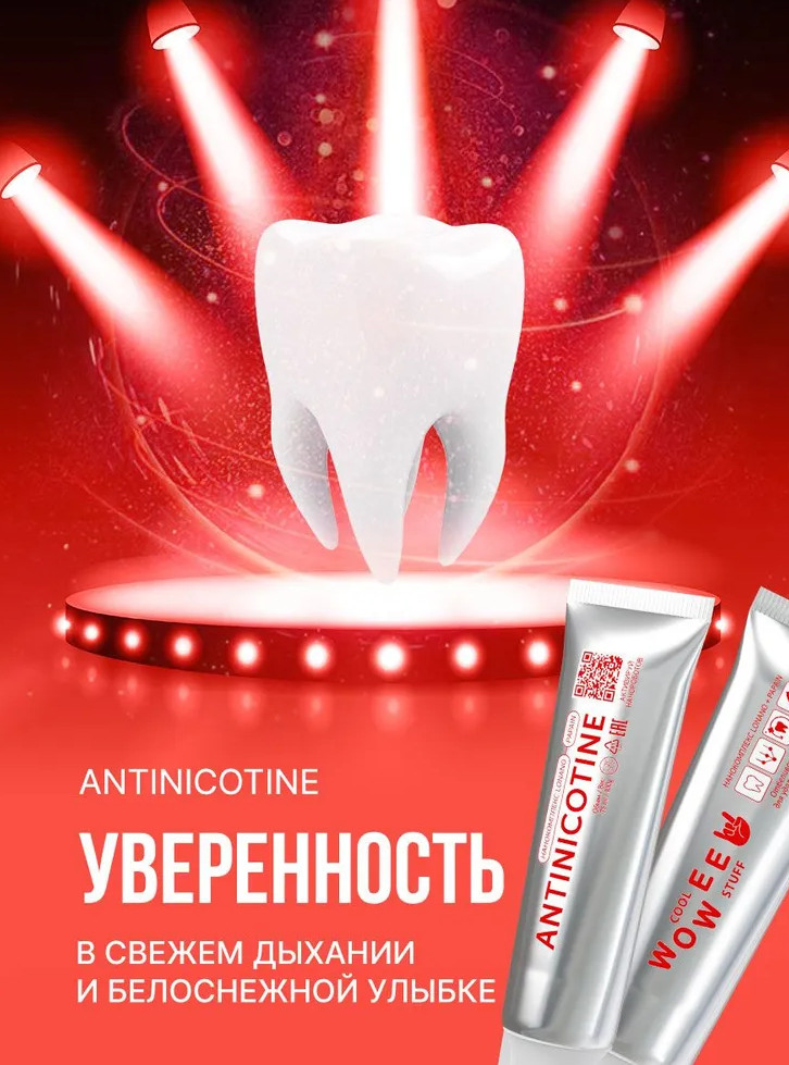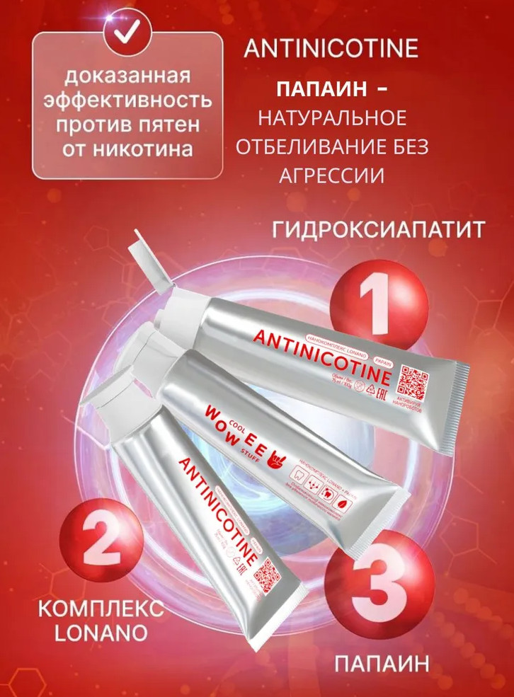 WOWEE Набор зубных паст отбеливающих от темного налета табака, кофе и чая «Antinicotine»