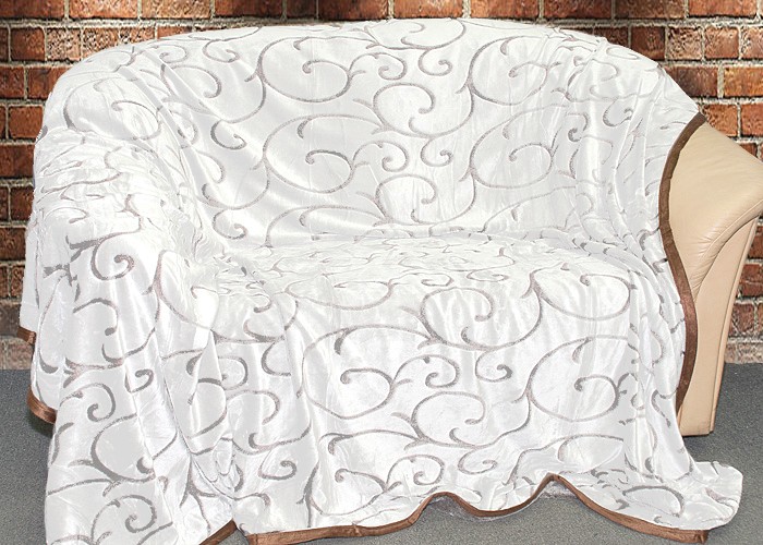 Качество хорошее, немного смущает, что пока видны складки-заломы после транспортировки, надеюсь разгладится. На ощупь приятное, но скользкое, ворс как у бархата имеет направление и в связи с этим меняется оттенок, если ворс не по направлению. Цвет в оригинале скорее всего светло серый. Рисунок странным образом все же напоминает коричневый. С обратной стороны плед однотонный серый. Легкий, электризуется.