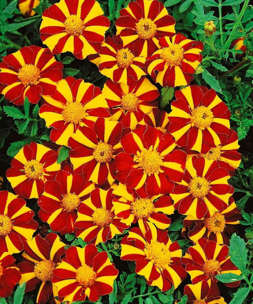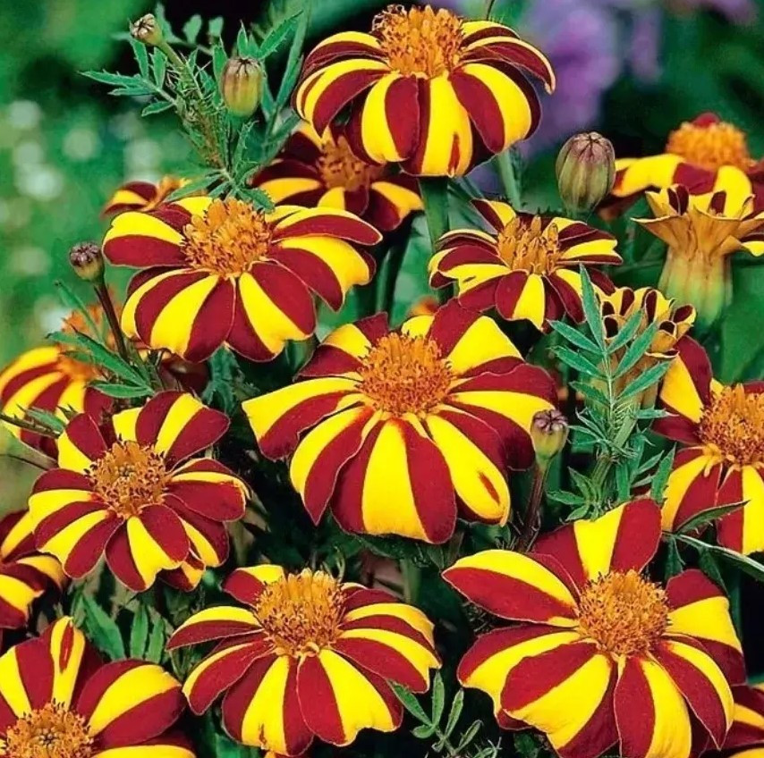 Серия: Цветущий балкон Классический сорт бархатцев с контрастными соцветиями диаметром 4-5 см. Полюбился многим садоводам за высокую декоративность и завоевал мировую известность в области цветоводства и озеленения. Растение представляет собой пышный и крепкий кустик высотой около 40 см, с мелкими резными листьями, тонкими цветоносами и выразительными цветками. Двухцветная окраска не выгорает на солнце, притягивая восхищенные взгляды всё лето. Цветение непрерывное и очень обильное. Сорт подходит для оформления всех видов цветников. Его можно выращивать в балконных контейнерах, обеспечив растениям регулярные поливы и подкормки. |