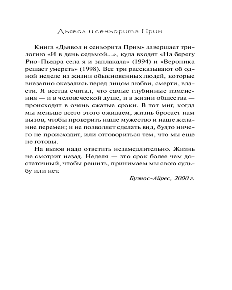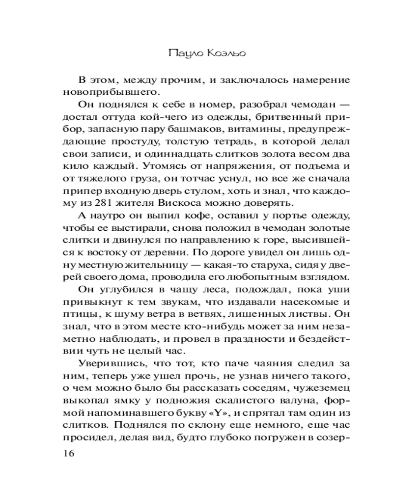 💳 Оплатить за товар можно при получении 🇰🇿 Есть бесплатная доставка по Казахстану от 1 дня 🎁 Копите бонусы с каждой покупки Серия: Коэльо. Классика В маленьком горном селении появляется незнакомец. В чемодане у него одиннадцать слитков золота, с их помощью он хочет испытать людей, которые, по его мнению, более склонны к злу, чем к добру. Селянам предстоит прожить неделю, полную драматических событий, оказаться перед лицом любви, смерти, власти, в душе каждого будет происходить борьба между Светом и Тьмой. |