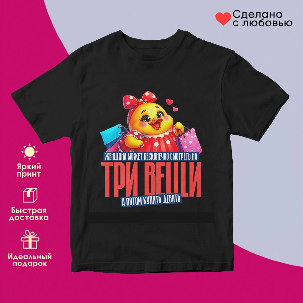 TopPoshiv Футболка с принтом «Женщина может бесконечно смотреть на три вещи»
