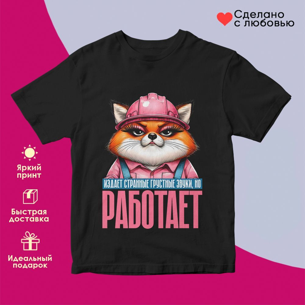 Футболка с принтом «Издает странные грусные звуки, но работает футболка (жен)» | TopPoshiv