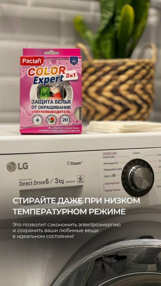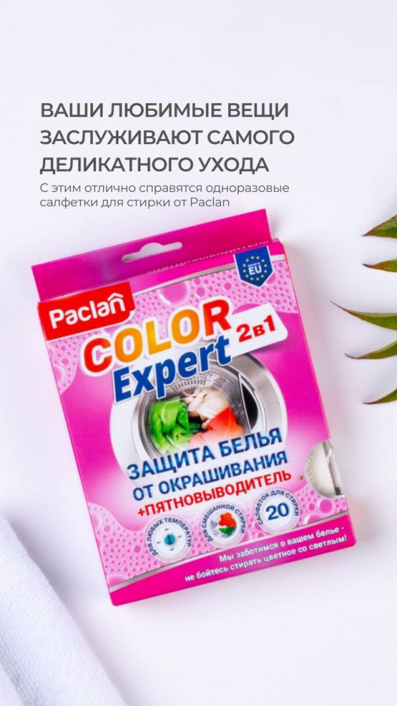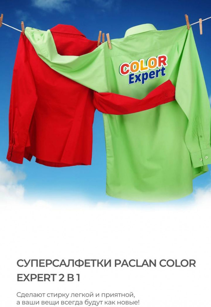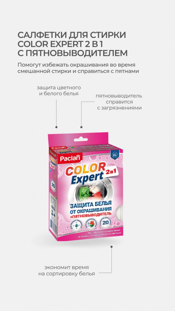 Paclan Салфетки для предотвращения окрашивания во время смешанной стирки с пятновыводителем 2 в 1 «Color Expert»-25% +40