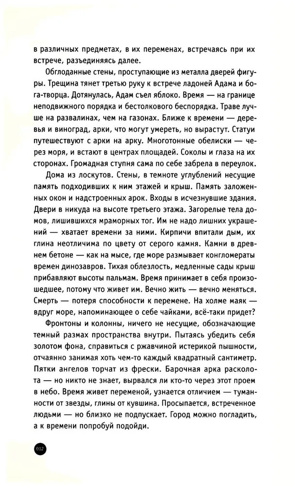 💳 Оплатить за товар можно при получении 🇰🇿 Есть бесплатная доставка по Казахстану от 1 дня 🎁 Копите бонусы с каждой покупки Серия: Письма русского путешественника Новая книга известного поэта и критика А. Уланова состоит из двух частей. Собрание стихотворений в прозе «В()месте» — уникальная поэтическая карта мира от России до Америки, от Греции до Китая, завораживающая литературная инсталляция, каждый элемент которой выложен из древнего камня, омыт водой океанов, помнит взгляды богов и богинь. Философская повесть о реальной и виртуальной любви «Здесь», составившая вторую часть книги, продолжает тему географии и пространства мира. Она разбита на диалоги и монологи возлюбленных, которые периодически оказываются в разных концах света. Рассказчик читает чужие пейзажи, почти не касаясь взглядом, чтобы не потревожить их уникальную структуру, а героиня повести — одновременно и конкретный человек, и воплощение собирательного образа вечной женственности. Александр Уланов — поэт, прозаик, переводчик, литературный критик, лауреат премии Андрея Белого (2009), автор сборников «Волны и лестницы» (1997), «Между мы» (2006), «Перемещения +» (2007), «Способы видеть» (2012). |