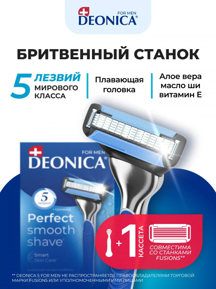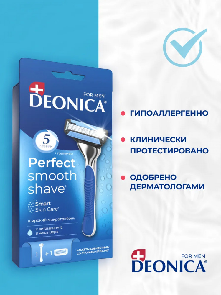 Серия: For men Мужская бритва Deonica For Men с пятью сверхострыми лезвиями — это сочетание высокой эффективности, современного дизайна и продуманного ухода за кожей. Благодаря применению японской стали премиум-класса и технологий мирового уровня, каждый штрих бритвенного станка гарантирует гладкость без риска порезов и раздражений. Инновационная смазывающая полоска с витамином Е, маслом ши и экстрактом алоэ вера смягчает поверхность кожи, уменьшая трение и создавая комфорт даже при ежедневном использовании. Широкий микрогребень направляет волоски точно к лезвиям, что особенно важно при работе в труднодоступных зонах. Плавающая головка точно повторяет контуры, обеспечивая безупречную чистоту с первого движения, а триммер с обратной стороны поможет выровнять контур до идеала. |