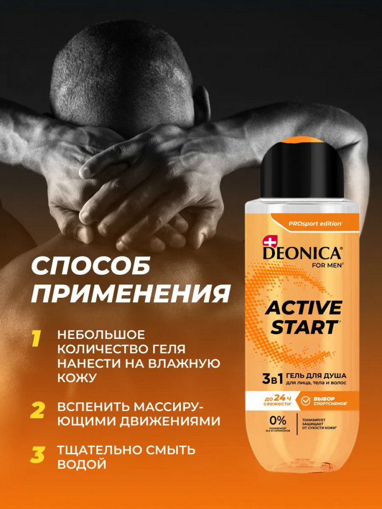 Deonica гель для душа и шампунь для волос 3 в 1 «Active Start»