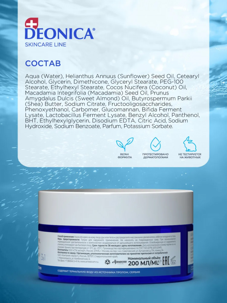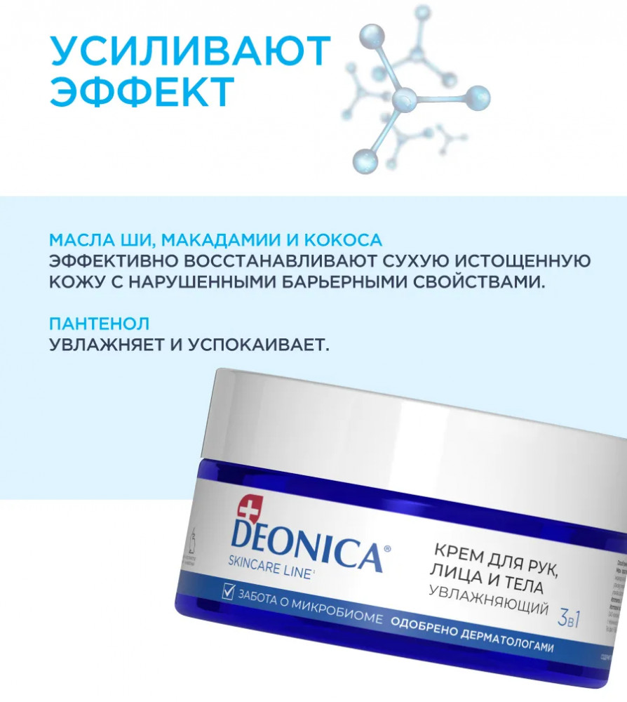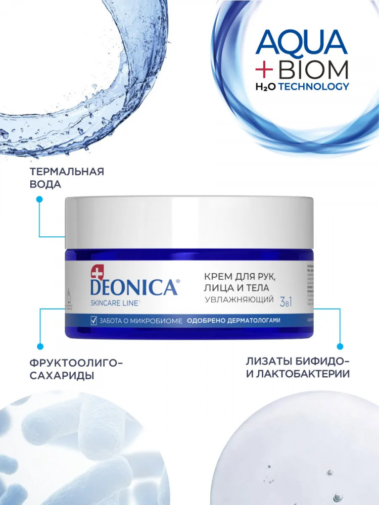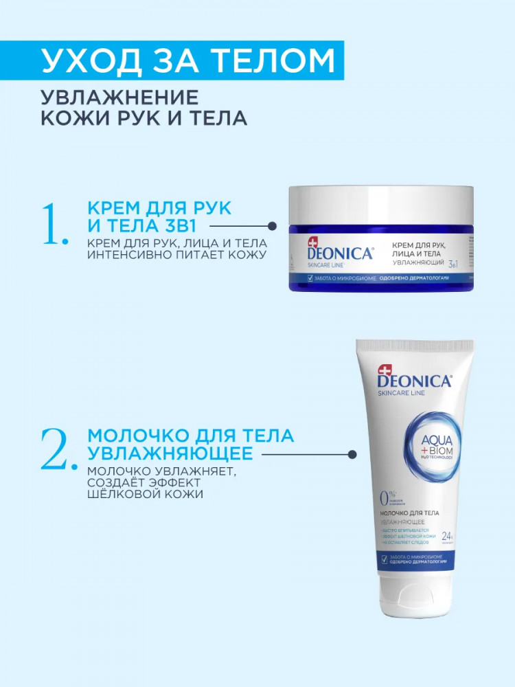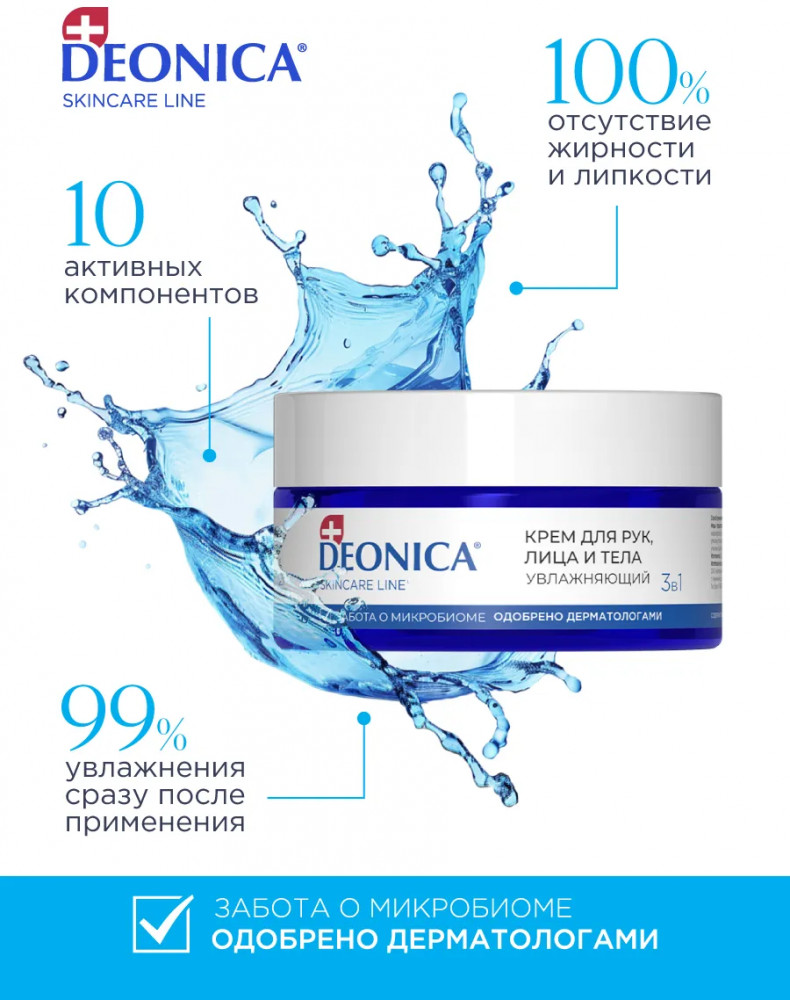 Deonica Крем для рук, лица и тела увлажняющий 3 в 1