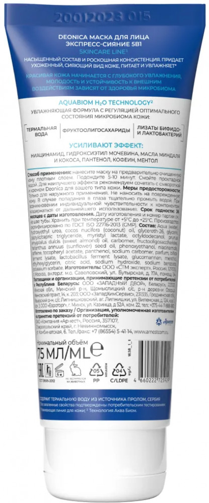 Deonica Маска для лица «Экспресс-сияние»