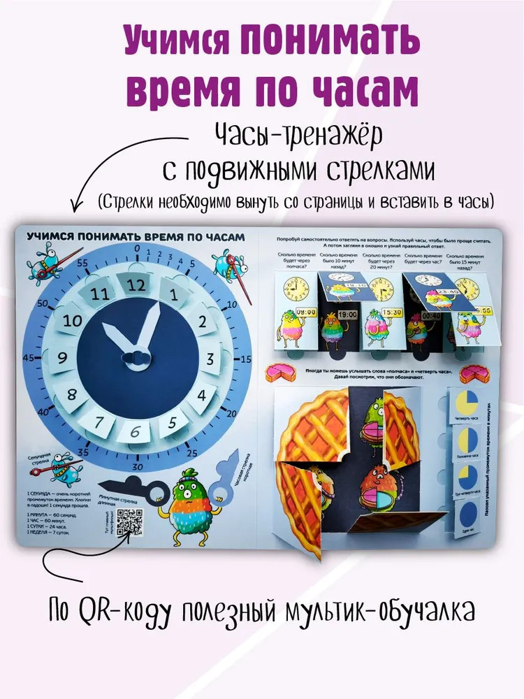 Эта книжка с окошками станет отличным подарком ребенку на любой праздник. Она не только развивает мышление и память, но также воспитывает любовь к чтению и жажду новых знаний. Купить эту энциклопедию для детей — значит подарить ребенку возможность узнать много нового и интересного о часах и времени.