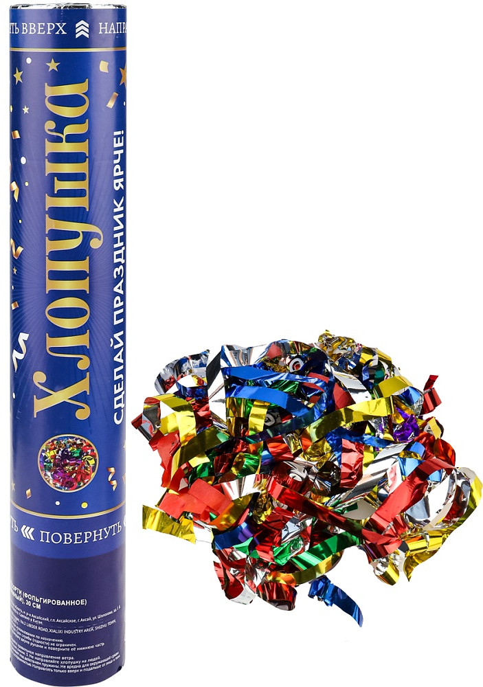 Хлопушка поможет создать отличное настроение и атмосферу настоящего веселья на любом празднике! Выстрел фольгированным конфетти очень эффектно смотрится на фото и видео! Хлопушка не является пиротехникой, она полностью безопасна при соблюдении инструкции на упаковке. Подходит для использования как в помещении, так и на улице.
