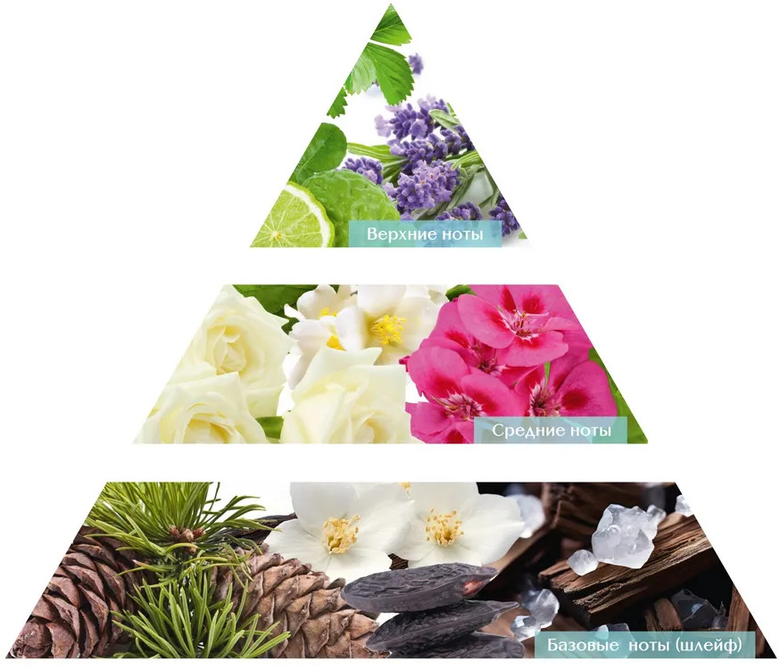 Средние ноты: герань, роза, жасмин, гелиотроп.
