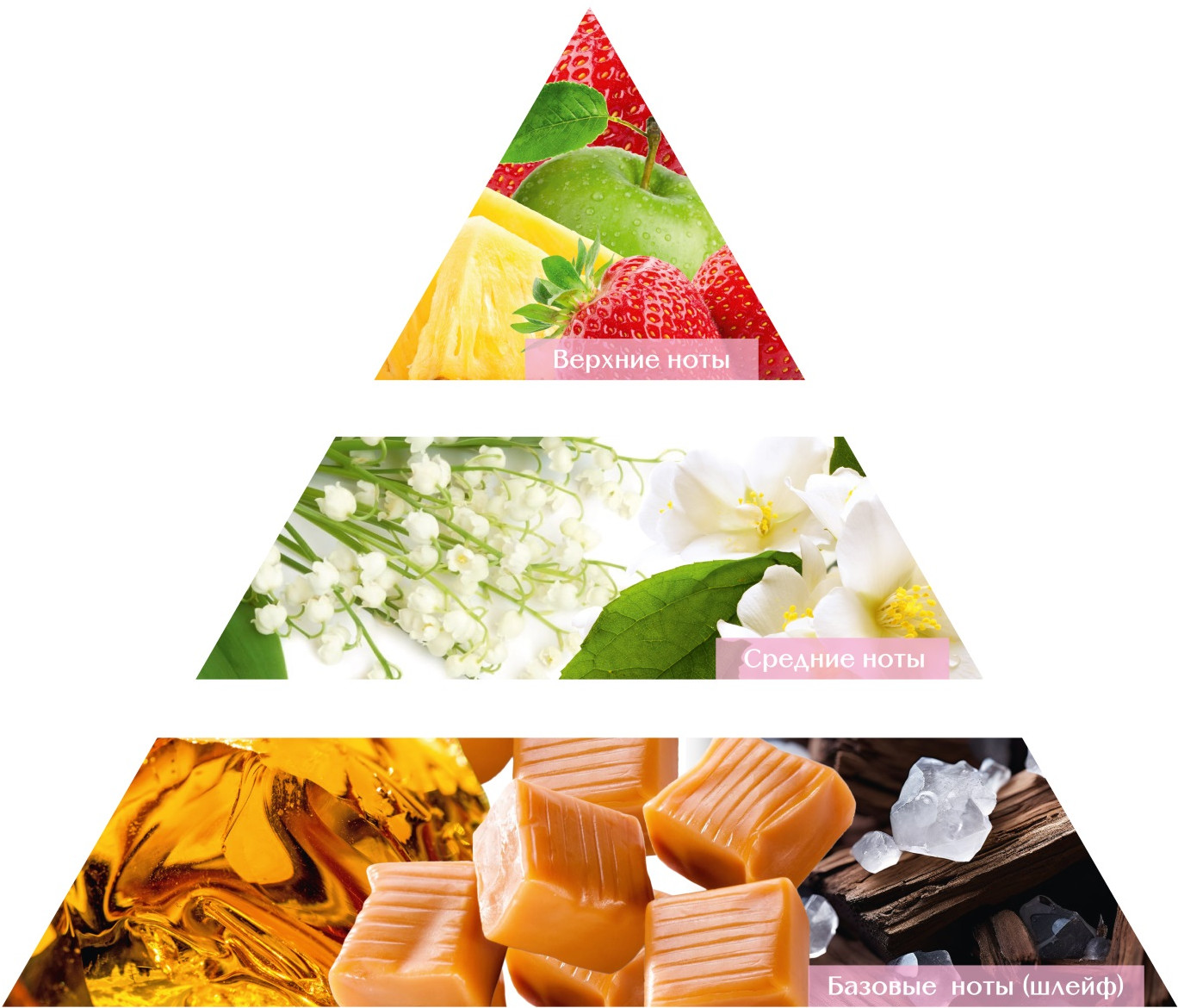 Базовые ноты: карамель, мускус, гелиотроп, сандаловое дерево, амбра, ваниль, бальзам.
