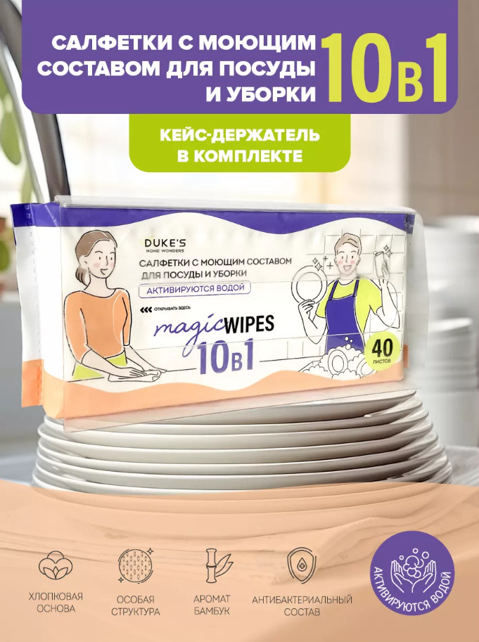 Салфетки для уборки DUKE’S — быстрый и удобный способ домашней уборки. Влажные салфетки помогут сохранить свежесть и чистоту в квартире с минимальными усилиями и затратами времени.