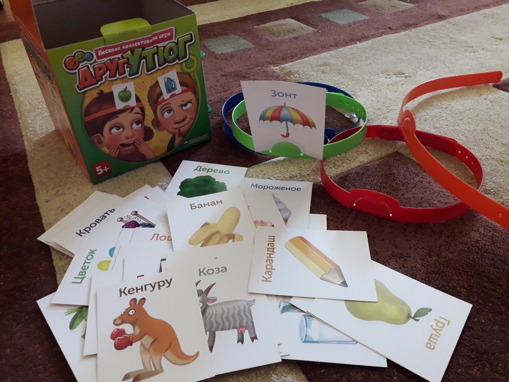 Веселая и интересная игра. Давно играем в нее всей семьей. Раньше клеили листочки написанные от руки на лоб, теперь нашли аналог с готовыми карточками и обручами для головы. Сразу же приобрели для дома. Игра подойдет для веселого времяпровождения на праздниках, как детских, так и взрослых, или просто для общения и игры со своими детьми. Правила простые и понятные. Думаю, игра никого не оставит равнодушным. Рекомендую!