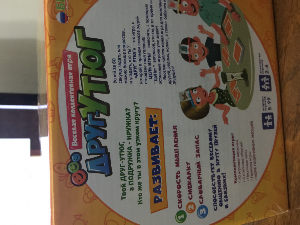 Это отличная игра! Чем больше компания, тем веселее. Играем с детками от 4-х лет. Взрослые тоже всегда с радостью участвуют. Никто никогда не отказывается. Еще бы карточки можно было докупать дополнительно, было бы ещё лучше. Великолепная игра, отличный подарок и чудесная развивашка для детей.