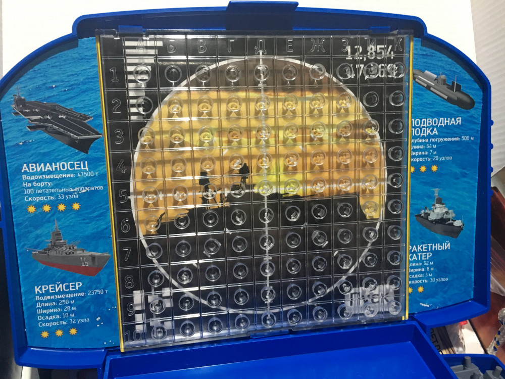 Привычная с детства игра "Морской бой" только усовершенствованная - кораблики можно потрогать, поле боя тоже вполне реальное. Все продумано, для развития ребенка просто замечательно - и моторика задействована и умственные способности развиваются. Спасибо магазину, покупкой остались довольны!