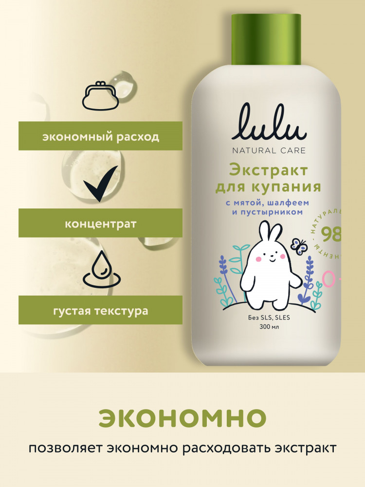 Lulu Экстракт для купания малышей с маслами мяты, шалфея и экстрактом пустырника
