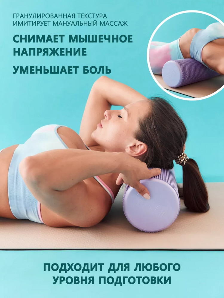 Ролл для фитнеса — это снаряд для йоги, пилатеса, МФР (миофасциальный релиз), ЛФК и для самомассажа. Массажный тренажер используют для разогрева мышц перед тренировкой и для проработки триггерных зон после занятия. Наш массажный ролик проводит мягкий и глубокий массаж мышц, позволяя расслабиться после тренировки и снять напряжение в области шеи и позвоночника, а также является отличным помощником в период реабилитации. Использование мфр ролл в проблемных зонах помогает улучшить обмен веществ, избавиться от отеков, разрушить жировые отложения и увеличить тургор кожи. Становится красивой осанка и уходят боли в спине. Обратите внимание: новый рол для спины, после снятия транспортировочной пленки, имеет фабричный запах — полностью улетучивается через 2 дня. Роллы для фитнеса способствуют улучшению гибкости тела, а валик для йоги поможет правильно выполнять асаны.